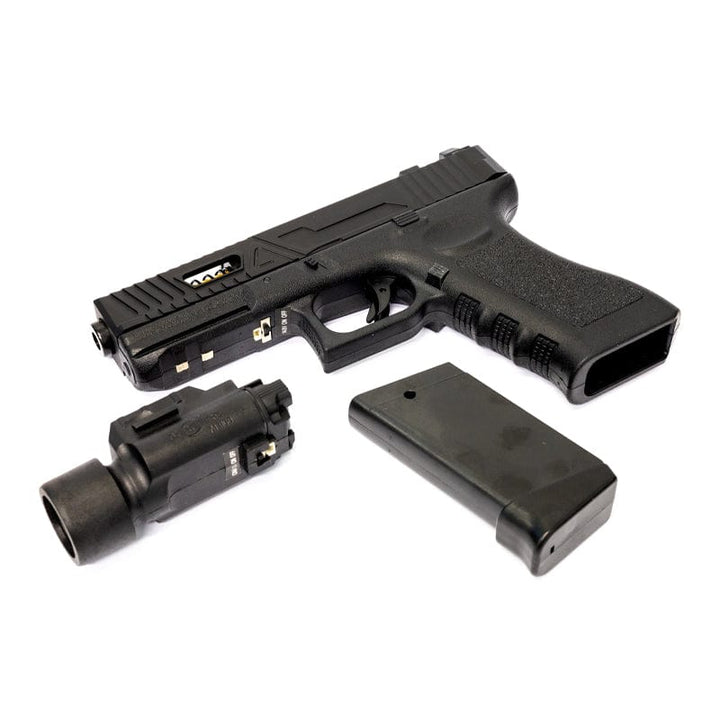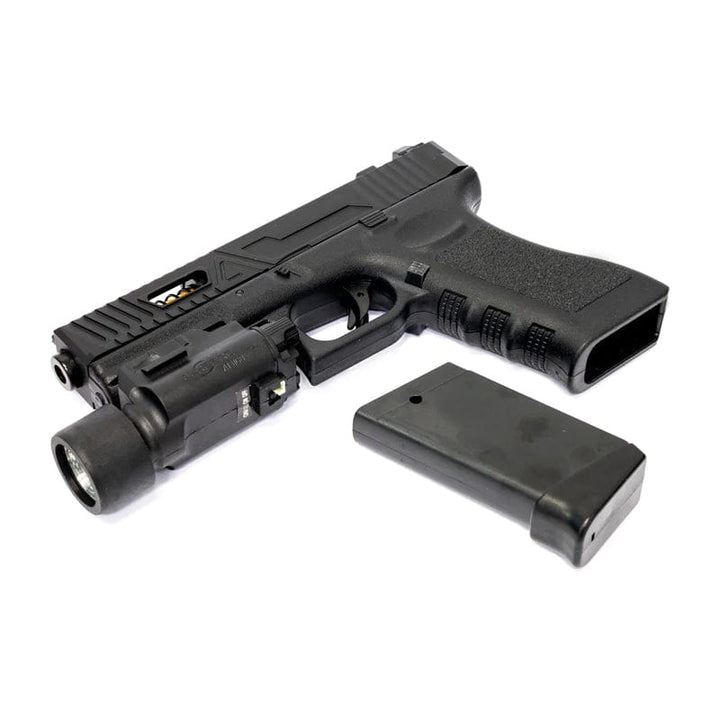 Nuestra réplica es automática y semiautomática, alimentada por una batería recargable de 7.4V, simplemente deslice la antorcha para cambiar a una alimentación de 14,8V. Acabados de alta calidad, diseñada en Nylon, nuestra réplica 1:1 es un arma de mano fiable.